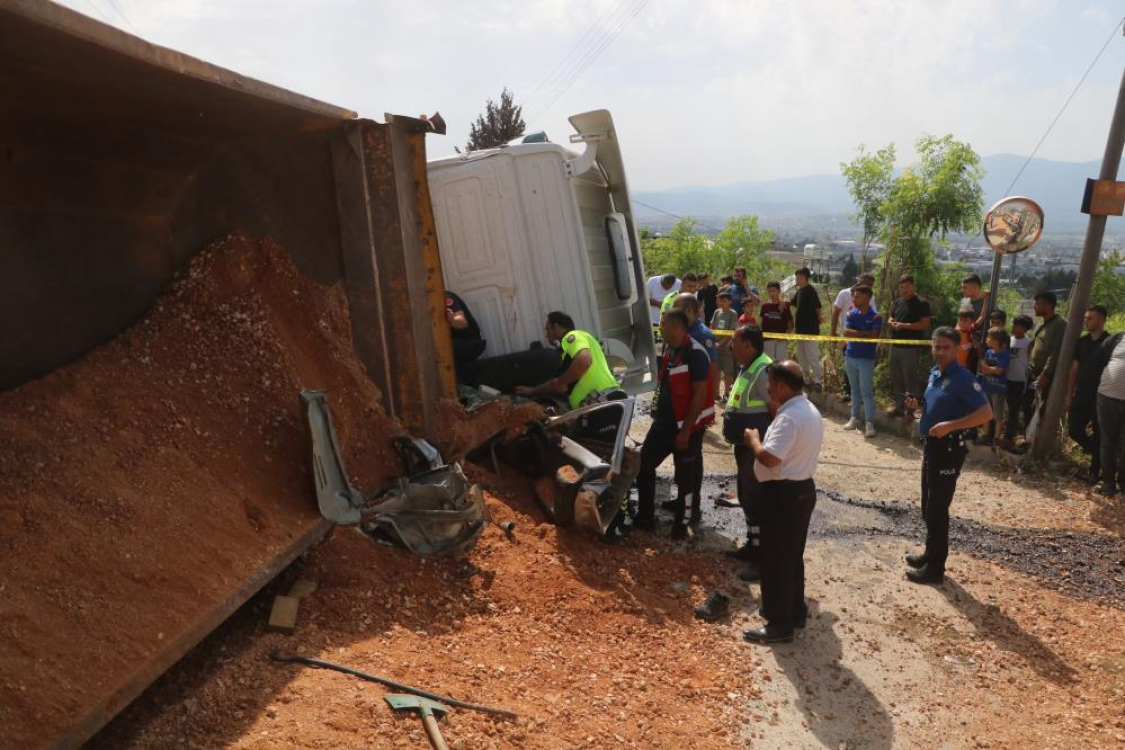Hatay’da hafriyat kamyonu seyir halindeki otomobilin üzerine devrildi. Hurdaya dönen otomobildeki 2 kişi ve kamyon sürücüsü yaralandı.