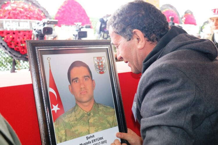 Şubat ayı içerisinde rejimin hain saldırılarda şehit olan Piyade Uzman Onbaşı İbrahim Halil Açıkgöz, Piyade Uzman Onbaşı Onur Şükrü Özler Gaziantep'te defnedilirken, dün yapılan hain saldırıyla şehit olan Mustafa Ertürk ile beraber Gaziantep 3. şehidini verdi. YENİ ÇİZGİ-İHA