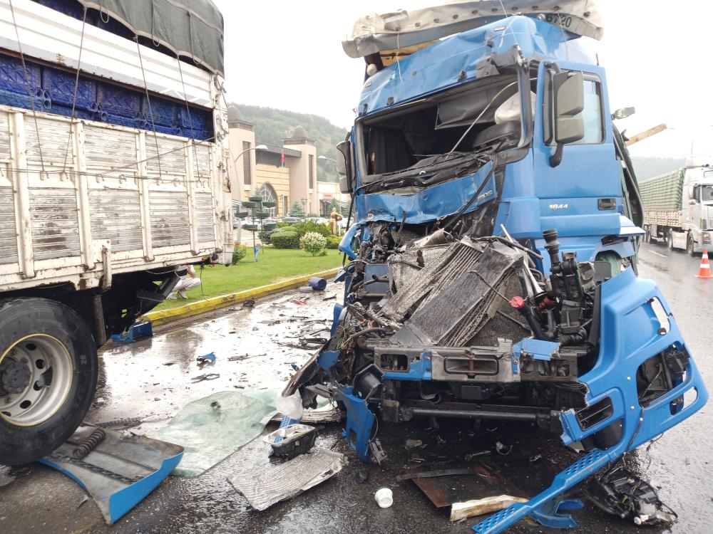 Yabancı uyruklu kadının kullandığı tır, kamyona arkadan çarptı: 2 yaralı