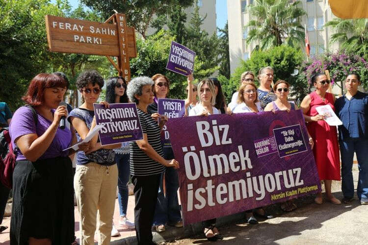 Mersin Kadın Platformu adına konuşan Ayşe Bezeğiş de kadın cinayetlerine gereken cezanın verilmemesinin bu tür olayları arttırdığını savundu. Feray'ın katil zanlısını kimsenin tanımadığını söyleyen Bezeğiş, "Katil, mahkemeye bu yönde tek bir tanık bile sunmazken bir de arkadaş oldukları yönünde beyan verdi. Ancak tanımak, arkadaş olmak bir kadını öldürmenin gerekçesi asla olamaz. Katil zanlısı dava sürecinde de cinayeti işledikten sonra delillerin önemli kısmını yok ederken, cinayete kaza süsü vererek mahkemeyi yalanlarıyla yönlendirdi. Takım elbiseli, kravatlı olarak duruşmaya gelen katile, mahkemenin verdiği ödül gibi ceza katili cesaretlendirirken, aileyi bir kez daha öldürdü. Verilen karar sonrası katil zanlısı 1 buçuk yıl cezaevinde kaldığı göz önünde bulundurularak Ocak 2019 tarihinden şartlı olarak salıverildi. Feray'ın dosyası şubat ayından bu yana Yargıtay'da ve bizler sanık gerekli cezayı alana kadar bu davanın peşini bırakmayacağız. İnsan öldürmenin nasıl iyi hali oluyor? Kadın cinayetlerini önleyici politikalar geliştirilsin ve şiddeti önlemeye dair var olan yasalar uygulansın" diye konuştu. Mersin Kadın Platformu adına konuşan Bezeğiş, “Yeter artık” diyoruz. Kadın cinayetlerini önleyici politikalar geliştirilsin ve şiddeti önlemeye dair var olan yasalar uygulansın. Kadın cinayetlerinde “haksız tahrik indirimi, “iyi hal indirimi ”uygulamalarından vazgeçilsin. Katiller değil, kadınlar korunsun istiyoruz. Bu cinayetlere sesiz kalmayalım. Bizler yaşamak istiyoruz. Kadınlar hayatı istiyor. Yeter artık Feraylar ölmesin” diye ifade etti.