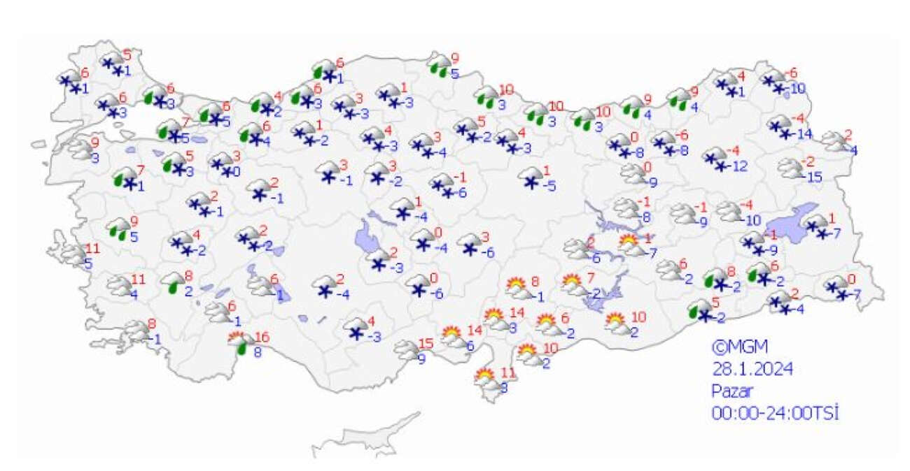 Kıyı kesimlerde karla karışık yağmur, iç kesimlerde kar şeklinde, güney kıyı kesimlerde yağmur ve sağanak şeklinde olması beklenen yağışların Bolu çevreleri ile Zonguldak, Bartın, Karabük ve Düzce illerinin yüksek kesimleri, Kastamonu’nun kuzeyinin yüksekleri, Sakarya’nın güney ve doğusunun yükseklerinde kuvvetli kar yağışlar olması bekleniyor. Sabah ve gece saatlerinde pus ve yer yer sis ile birlikte iç ve doğu bölgelerde buzlanma ve don olayı görüleceği tahmin ediliyor.