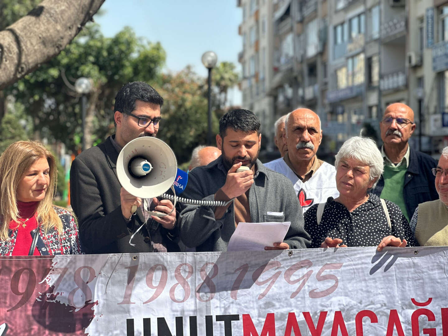 MERSİN- BEKİR ŞAHİN: Yurt genelinde olduğu gibi Mersin’de bir araya gelen İHD, ÖHD, ÇHD Mersin Şubeleri ile demokrat ayrın çevreler Mart aylarındaki katliamlarda yaşamını yitirenler anılarak, katliamların unutturulmayacağına vurgu yaptılar. İHD Mersin Şube Başkanı Gazi İnci, “Mart aylarında katledilen Kürtler, Aleviler, devrimci öğrenciler, çocuklar, kadınlar bu coğrafyanın birer unsuruydular. Ne katledilenleri ne de katliamları unutturmayacağız” diye ifade etti.