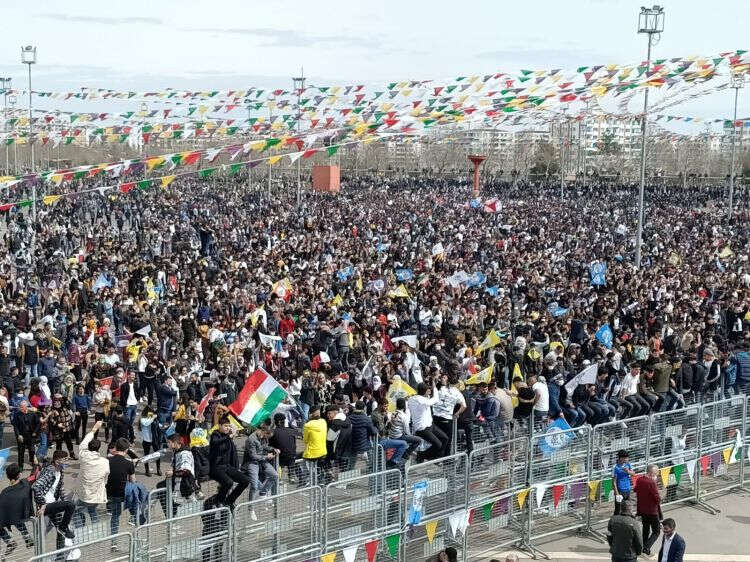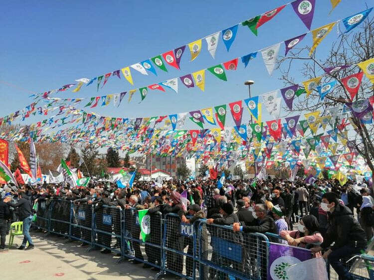 Diyarbakır Newroz'u için sabahın erken saatlerinden itibaren alanı dolduran Diyarbakırlılar HDP’nin kapatılma davasına karşı tepki verdi.