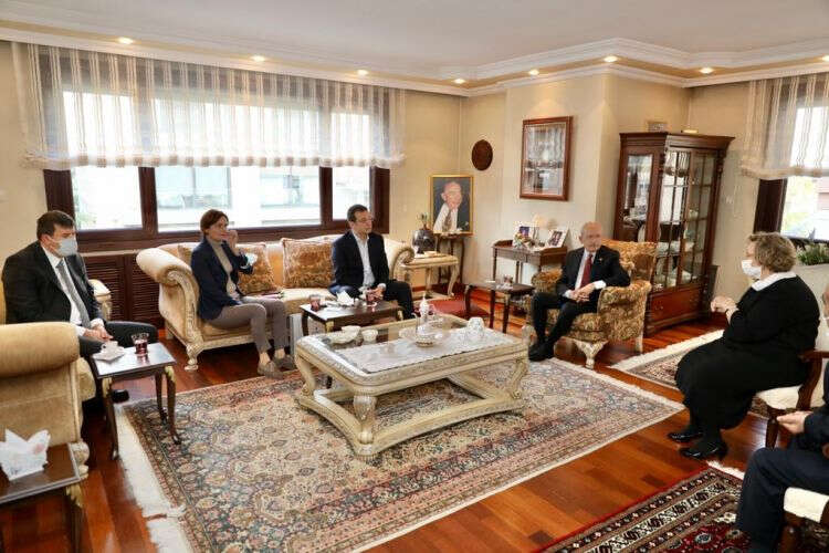 CHP Genel Başkanı Kemal Kılıçdaroğlu, İstanbul CHP İl Başkanı Canan Kaftancıoğlu, İstanbul Büyükşehir Belediye Başkanı Ekrem İmamoğlu ve Kadıköy Belediye Başkanı Şerdil Dara Odabaş, Alpaslan Türkeş'in eşi Seval Türkeş'i evinde ziyaret etti.