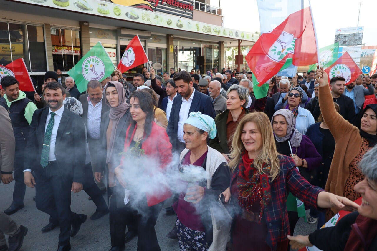 MERSİN-BEKİR ŞAHİN: Mersin'de DEM Parti hareketlilği sürüyor. Akdeniz'de seçim bürosu açılışına katılan DEM Parti Eş Genel Başkanı Tülay Hatimoğulları, “Karabasan gibi tepemizde çöreklenmiş olan bu iktidara en büyük dersi 31 Mart seçimlerinde hep beraber vereceğiz. DEM gelecek devran dönecek" diyerek, sandıkta demokrasi dersi verileceğini açıkladı.