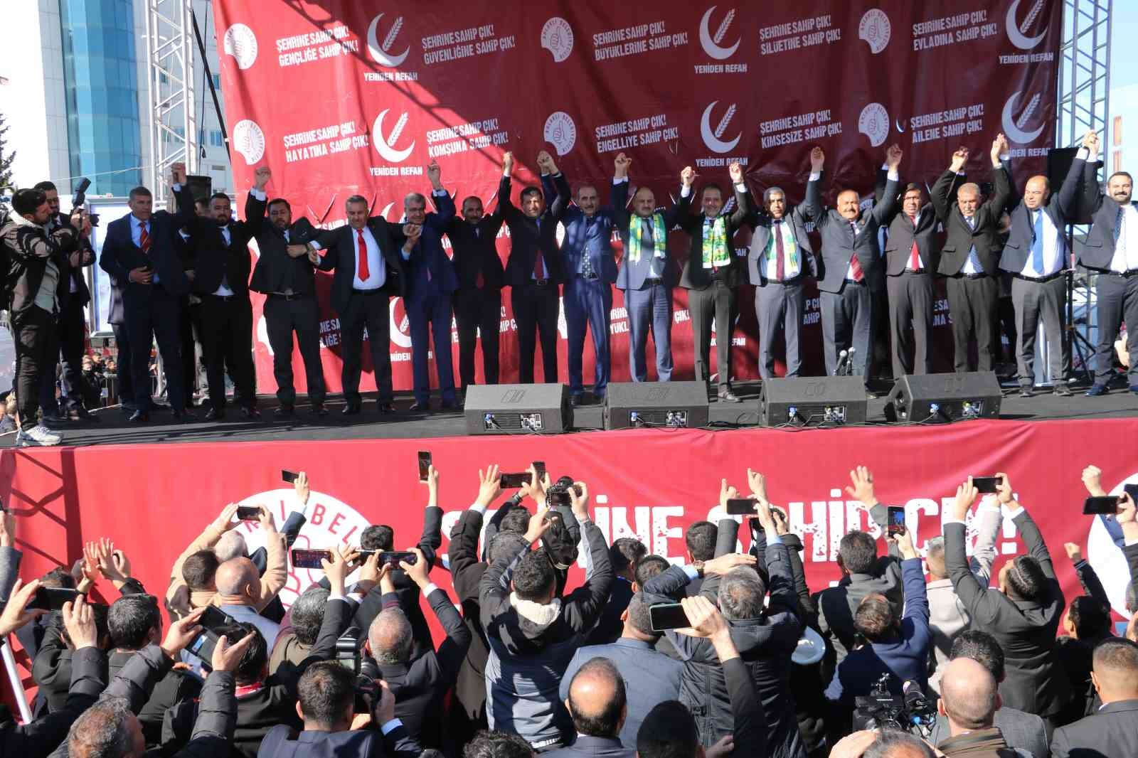Yeniden Refah Partisinin üye sayısının son 7 ayda iki katına çıkarak 492 bini aştığını söyleyen Erbakan, “Buradan sözlerimize başlarken çok değerli Mehmet Kasım Gülpınar başkanımıza en zor zamanda taşın altına elini koyduğu için, Urfa için, Urfalılar için, mazlumlar ve garipler için, millete hizmet için, vatanına, toprağına hizmet için bu mücadeleye girişmesinden dolayı kendisine en içten teşekkürlerimizi sunuyoruz, Allah kendisinden razı olsun. Tabii ki birbirinden kıymetli ilçe belediye başkan adaylarımız kendilerine de zaferler, başarılar ve hayırlı hizmetler diliyoruz. Çok değerli il başkanımız, Yeniden Refah Partimizin fedakar, cefakar teşkilatları, ilçe başkanlarımız, hanım kollarımız, gençlik kollarımız,
