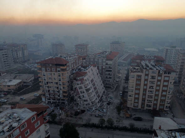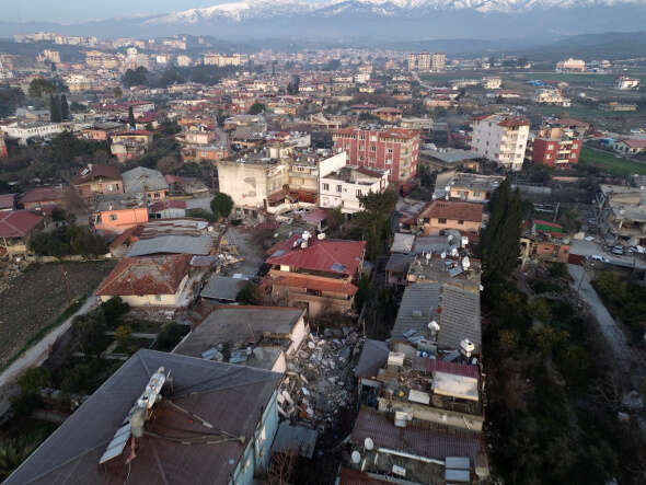 Depremde en çok yıkımın yaşandığı şehirlerin başında gelen Hatay`da depremin 4. gününde şehir dron ile havadan görüntülendi.