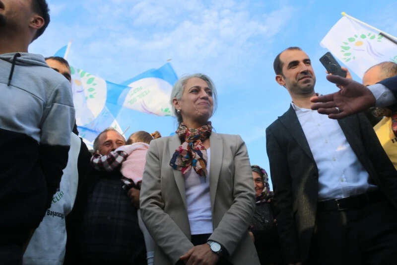 “Siyasi kumpas davalarıyla arkadaşlarımızı gözaltına aldılar. Demokratik siyaset yapacak kimse kalmaz dediler. İşte demokratik siyasetin yeni yürütücüleri. Çöktürme planıyla ‘demokrasi güçlerinin çökerteceğiz, AKP Türkiye’si inşa edeceğiz’ dediler. Alın size mücadele edenler. 14 Mayıs seçimlerinden çok korkuyorlar. Aslında bizden korkuyorlar, demokratik siyasetten, Kürt halkın mücadelesinden korkuyorlar. Yani bizden korkuyorlar. 14 Mayıs seçimlerine ‘darbe’ diyen İçişleri Bakanlığı; biz seçimlerde baharı getirmeye geliyoruz. Sandıklara, zılgıtlarla, halaylarla, ‘jin, jiyan, azadî’ sloganıyla gideceğiz. Bu iktidarın elinde şiddet dışında bir şey kalmadı. Ekonomik alanda şiddet uyguluyor. Kendileri saraylarda sefalarını sürüyor. Bu ülkenin doğasına şiddet uyguluyor. Kadınlara şiddet uyguluyor. Bunları yapanları da cezasızlıkla ödüllendiriyor. Elinde hiçbir şey yok. Bu iktidarın ne kadar şiddeti varsa bu halkın da o kadar büyük direnişi var. 14 Mayıs’ta kaybetmeye hazır değiller ve korkuyorlar. Biz halk olarak onları göndermeye çok hazırız değil mi? Bu seçim bize savaşa dayatanlarla, barış isteyen bizler arasında. Bize yoksulluğu reva görenlerle, ekonomik adaleti sağlamak isteyen bizler aramızda. Karar verdik, AKP’yi gönderiyor muyuz? Yeni yaşamı birlikte kuruyor muyuz? İki oy kullanacağız. Birisi partimize, ikinci oyumuz tek adam rejimini yıkmak için Cumhurbaşkanı adayı olan Kılıçdaroğlu’na. Onlar kaybedecek, biz kazanacağız. 14 Mayıs, AKP’ye tam anlamıyla kaybettirmenin ve büyük kazanmanın seçimleri olsun.”Konuşmaların ardından sanatçılar sahne aldı. www.yenicizgihaber.com