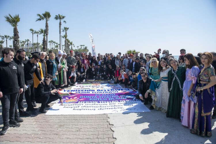 MERSİN- BEKİR ŞAHİN: Mersin’de 27 Mart Dünya Tiyatro Günü’nde tiyatro severler yürüyüş yaptı. Mersin Büyükşehir Belediyesi Şehir Tiyatrosunun da katıldığı etkinliğe tiyatro severlerde katılım sağladı.