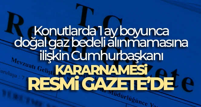 Konutlarda 1 ay boyunca doğal gaz bedeli alınmamasına ilişkin Cumhurbaşkanı Kararnamesi Resmi Gazete\'de