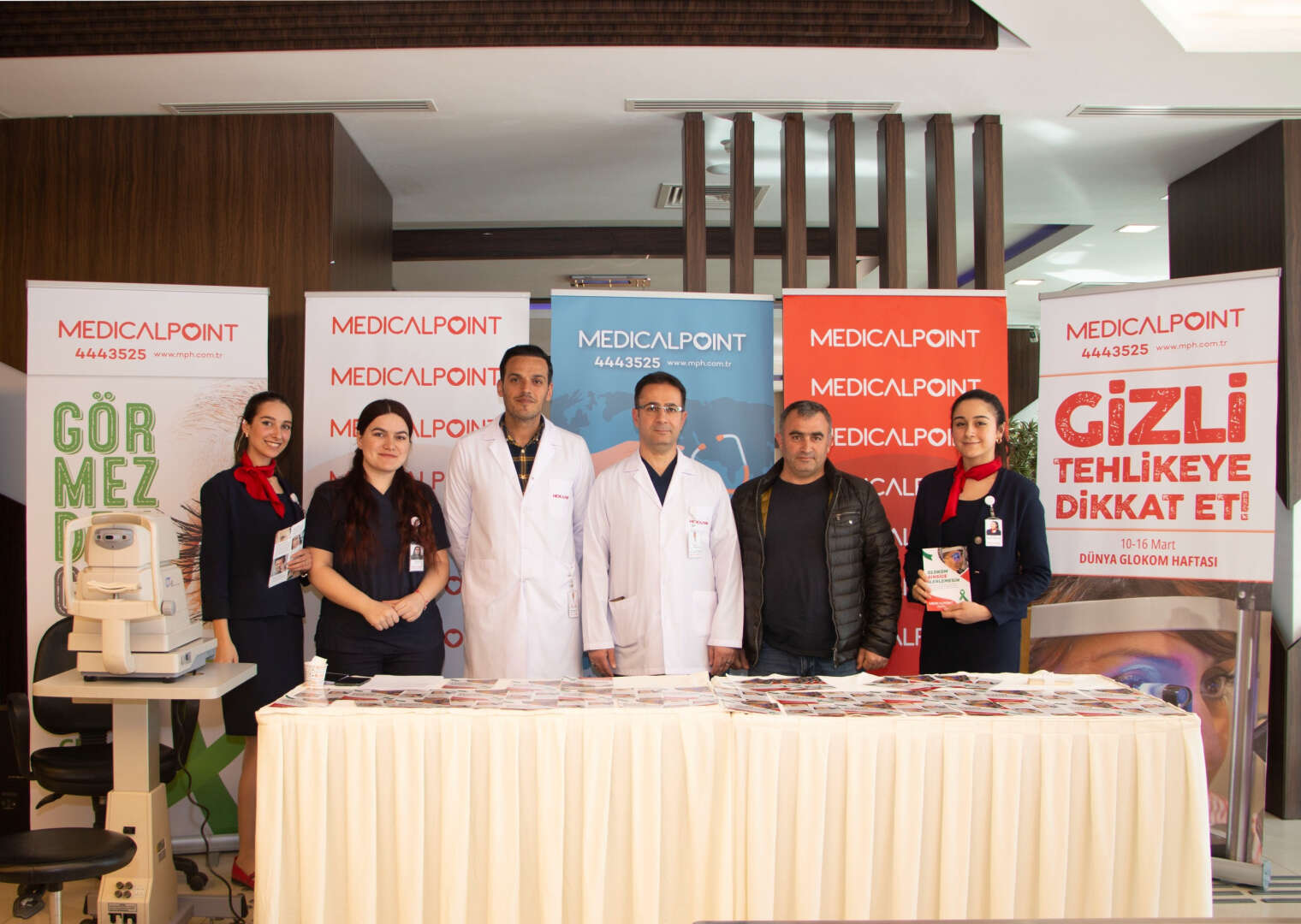 GAZİANTEP- AYSEL ŞAHNİ: Medical Point Gaziantep Hastanesi Dünya Glokom Haftasında Glokom (Göz Tansiyonu) hastalığına dikkat çekmek ve farkındalık oluşturmak amacı ile geçtiğimiz günlerde hastane girişinde kurulan stantta etkinlik gerçekleştirdi.