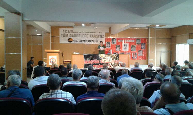GAZİANTEP - BEKİR ŞAHİN; 12 Eylül Askeri Darbesi’nin 39’uncu yıldönümü nedeniyle Gaziantep 78’liler Meclisi yaptıkları toplantıda, 12 Eylül darbecilerinin hesap vermedinği ileri sürülürken, 12 Eylül darbe zihniyetinin AKP/Saray rejimi ile devam ettiğine vurgu yapıldı.