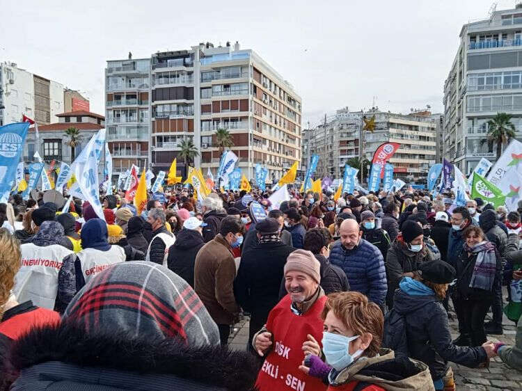 "Sadece ekonomik krizle boğuşmuyoruz. Aynı zamanda tek adam rejiminin yönetememe krizi ile karşı karşıyayız. Ekolojik krizle, kadınlara yönelik şiddetin ortaya çıkarmış olduğu krizle karşı karşıyayız. Bu kapitalist sistemin yaratmış olduğu neoliberal politikalar, özelleştirme politikaları, güvencesizleştirme politikaları, yani bu kapitalist barbarların artık sonuna gelmiş bulunmaktayız. İşte bizden bu yoksulluğa, bu işsizliğe karşı yeni bir toplumsal yaşamı inşa etmek için buradayız ve sizlerle bu kışta bu kıyamette sesimizi birleştiriyoruz. Biz biliyoruz ki her karanlığın bir şafağı, her kışın bir de baharı vardır. İşte o baharı getirenler burada, Tandoğan’dan, İstanbul’dan emekçileri coşkuyla, sevgiyle selamlıyorum."
