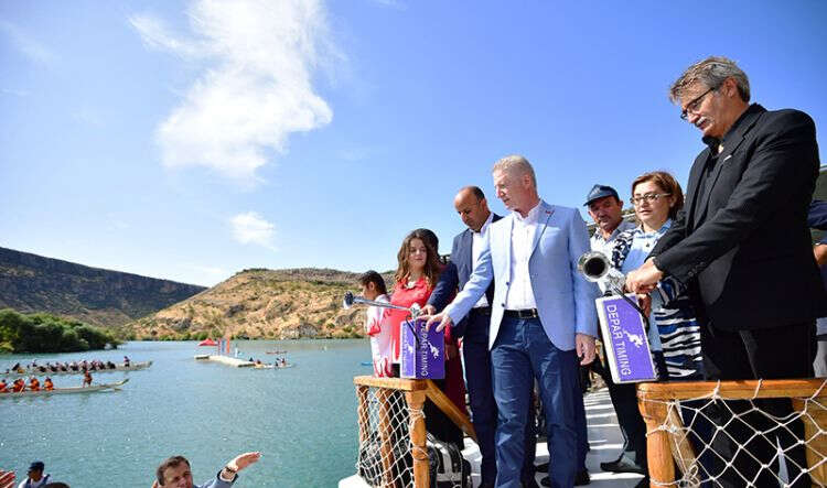 Dalış, su kayağı, jet ski, wakeboard ve flyboard gösterisiyle izleyenleri büyüleyen yarışlara katılan Büyükşehir Belediye Başkanı Fatma Şahin, yarışmaların startını verdi. Fırat’ın incisi Rumkale’den tüm dünyaya barış ve kardeşlik mesajı veren Şahin, “Fırat tarihtir, Fırat kardeşliktir, Fırat barıştır. Ordumuzun başlattığı Barış Pınarı Harekatı tamamlandığında Fırat’ın doğusu daha da güzelleşecek” dedi. “Spor Dostu Kent” kimliğine yaraşır projeleri hayata geçiren gazi şehir, iki yıl önce Milli Dalgıç Şahika Ercümen’in, 40 metre derinliğe daldığı Rumkale Su Sporları Yarışları ile su sporlarına “Merhaba” dedi. Gelenekselleştirilen yarışlara yeni bir mecraya yelken açan doğunun incisi, üçüncü kez saklı cennet Rumkale’ye tacını taktı. Büyükşehir Belediyesi Gençlik ve Spor Hizmetleri Daire Başkanlığı Spor Şube Müdürlüğünce gerçekleştirilen etkinliğinin müzik ve konserli bölümü Türk Silahlı Kuvvetleri’nin terör devleti kurulmasını engellemek ve Suriyelilerin kendi ülkelerine dönüşünü sağlamak amacıyla başlattığı Barış Pınarı Harekatı’ndan dolayı iptal edildi.