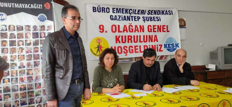 BES Antep Şubesinin olağan genel kurulu sendika binasında gerçekleşti. Divan başkanlığını emekli BES üyesi Mehmet İletmiş’in yaptığı kongreye şube başkanı Yunus Çiçek yönetim kurulu ve sendika üyeleri ile Eğitim Sen Şube Başkanı Ali Ersönmez, Tüm Belsen Şube Başkanı Niyazi Çevik, Haber Sen 7 Nolu Şube Başkanı Mesut Balcan, SES Eş Başkanları Dr. Ömer Kılınç ve Serpil Dağdemir katıldı. Divan başkanı Mehmet İletmiş sendikanın kurucu yöneticilerinden olduğunu hatırlatarak kuruluşundan buyana sendikal faaliyetlerin engellenmesine yönelik her türlü zorluğa ve baskıya direndiklerini, mücadele verdiklerini ve kazandıklarını söyledi. Bundan sonrada aynı mücadele ruhu ile sendikalarının yaşatılacağına inandıklarını kaydetti. İletmiş, yeni çizgi gazetesi