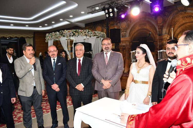 Düğün töreninde düzenlenen nikâh merasiminde ise genç çifte CHP Gaziantep Milletvekili Bayram Yılmazkaya, Gaziantep CHP il Başkanı Neşet Uçar, Gaziantep İnşaat Müteahhitleri Odası Başkanı Bora Kanavetçi, Güneydoğu Anadolu Halı ihracatçıları Birliği Başkanı Abidin Kaplan, TİM Halı Sektör Kurulu Başkanı Selahattin Kaplan, Gaziantep Esnaf sanatkârları Odalar Birliği Başkanı Ömer Küsbeoğlu, CHP Meclis üyesi Uğur Kalkan, İbrahim Yılmaz, Mehmet Koca, Cuma Törer, Halaf Algan, Tahir Tamer Taşkan Avukat Hasan Öztürkmen şahitlik etti. Nikâh töreninin ardından genç çiftin evlilik cüzdanlarını çifte takdim eden