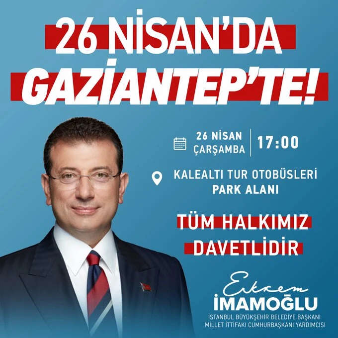 Ekrem İmamoğlu Gaziantep\'te halka hitap edecek