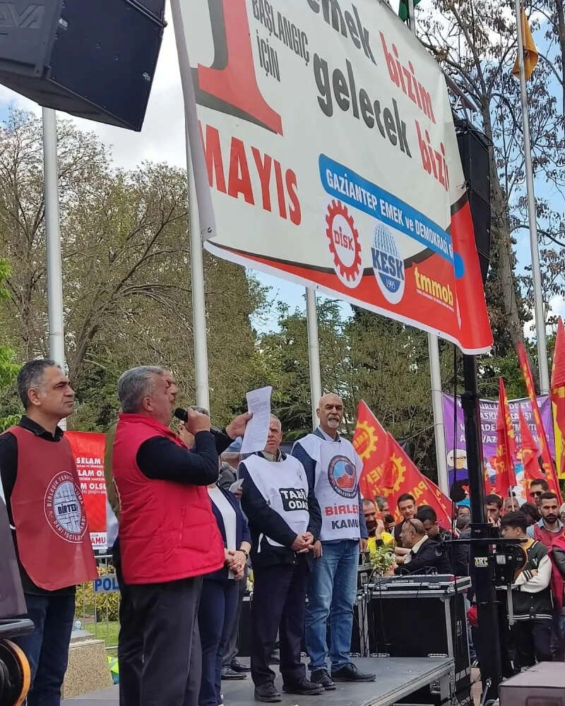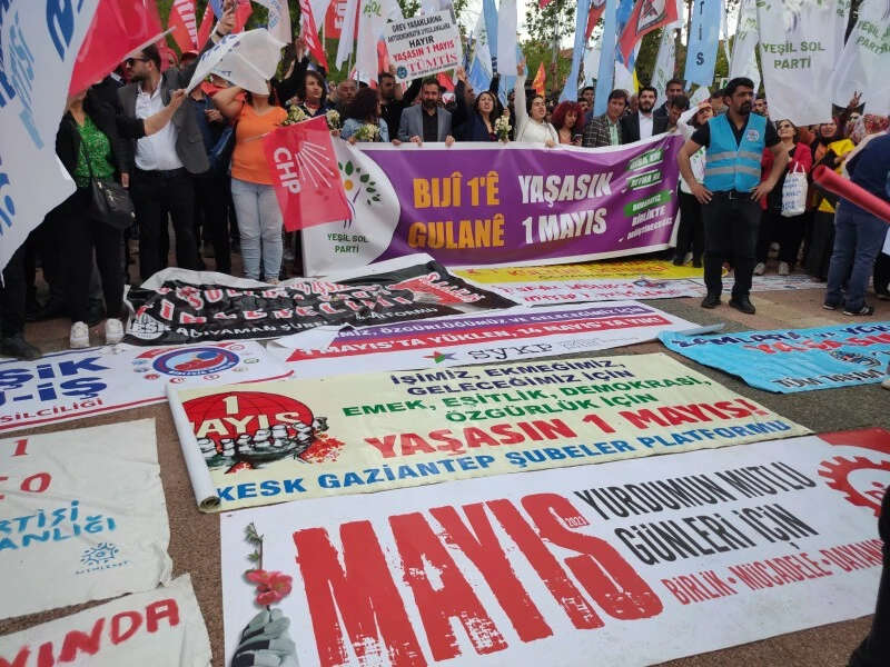 Gaziantep'te 1 Mayıs kutlamalarına, DİSK, KESK, TÜM TİS, BİRLEŞİK KAMU İŞ, Birleşik Tekstil, Dokuma ve Deri İşçileri Sendikası (BİRTEK-SEN), Emek Partisi (EMEP), Türkiye İşçi Partisi (TİP), Türkiye Komünist Partisi (TKP), Halkların Demokratik Partisi (HDP) ve Yeşiller ve Sol Gelecek Partisi (Yeşil Sol Parti) İHD, Pir Sultan Abdal Kültür Derneği ile Gaziantep’teki demokratı kitle örgütleri katılım sağladı. www.yenicizgihaber.com