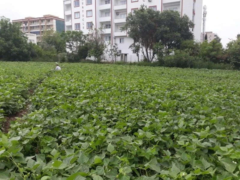 Karacami Mahallesi'nde açık alanda tarlada üretimi yapılan taze fasulyelerin ilk hasadı gerçekleştirildi.