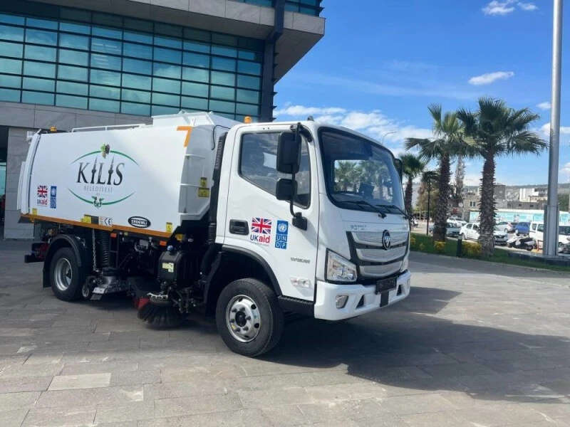 6 Şubat Kahramanmaraş merkezli yaşanan depremlerin ardından diğer illere göre az yıkım olan Kilis’te, nüfusun yüzde 40’lık artış olmasından dolayı şehir merkezine görev yapmak amacıyla, UNDP çerçevesinde Birleşik Krallıktan temin ettiği yol süpürme aracı, ve 110 çöp konteyneri, 200 hijyen kolisi Kilis Belediyesi önünde düzenlenen törenle Belediye Başkanı Servet Ramazan’a teslim edildi.