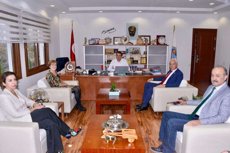 MERSİN-YENİ ÇİZGİ; Mersin’de düzenlenen Narenciye Festivali için şehre gelen, Kuzey Kıbrıs Türk Cumhuriyeti Başbakanlığı Özel Kalem Müdürü Cemal Redif beraberindeki heyetle birlikte Yenişehir Belediyesi Başkanı Abdullah Özyiğit’i makamında ziyaret etti.