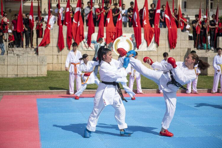 Yenişehir Gençlik Merkezi üyesi Kemal Akın’ın şiir okuması ile devam eden törende, Mersin Büyükşehir Belediyesi Halk Oyunları Ekibi de gösterilerini sergiledi. Mersin Gençlik ve Spor İl Müdürlüğü tarafından hazırlanan artistik jimnastik gösterilerinin ardından yine Mersin Gençlik ve Spor İl Müdürlüğü’nün Karate Gösteri Ekibi gösterilerini yaptı. Yenişehir Gençlik Merkezi üyesinin özel öğrencilerinden Melek Sude Akbaş da Kübra Yıldırım eşliğinde ‘Vardar Ovası’ türküsünü seslendirirken, program Mersin Gençlik ve Spor İl Müdürlüğü’nün güreş gösterileriyle sona erdi.