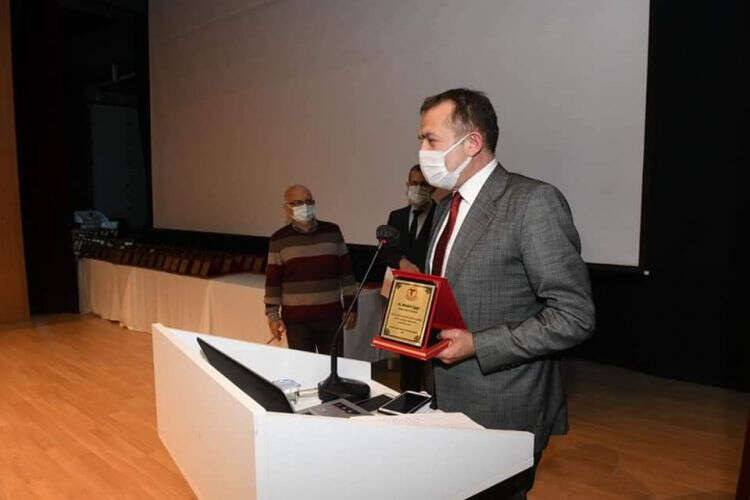 Törene Eczacı Odası Başkanı Özgün Sağır, Veteriner Hekimler Odası başkanı Bektaş Şenay, Dişhekimleri Odası başkanı Süleyman Yaldız, SES eş başkanı Dr. Zeki Sinan Doğan ve üyeler katıldı. Törende, Mersin’de koronavirüs ile mücadelede yaşamlarını yitiren sağlık çalışanlarının yakınları da katıldı. Duygu dolu anların yaşandığı törende koronavirüs ile mücadelede yaşamını yitiren sağlık çalışanları adına yakınlarına da plaket verildi. Dr. Serpil Şahin’in eşi Sonar Şahin’e, Dr. Turgut Erkutlu’nun yakını Korhan Erkutlu’ya, Diş Hekimi Murat Pazarbaşı’nın yakını Perihan Saydam Pazarbaşı’ya ve Dr. Nezih Aydoğan’ın ablası Nesrin Hallaç’a plaketlerini Başkan Seçer takdim etti.