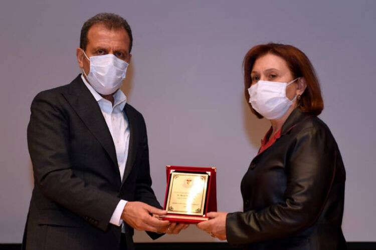 MERSİN-BEKİR ŞAHİN; Mersin Tabip Odası, 14 Mart Tıp Bayramı etkinlikleri kapsamında Yenişehir Belediyesi Atatürk Kültür Merkezi’nde plaket töreni düzenledi. Pandemide sağlık çalışanları ile işbirliği içerisinde yürüttüğü çalışmalardan dolayı Mersin Büyükşehir Belediye Başkanı Vahap Seçer’e, Yenişehir Belediye Başkanı Abdullah Özyiğit ve Mezitli Belediye Başkanı Neşet Tarhan’a da plaket verilerek onurlandırıldılar. Başkanlar sağlık çalışanlarına birkez daha teşekkür etti.