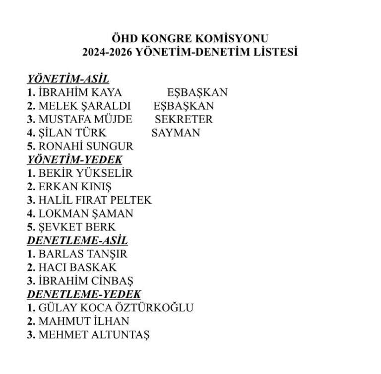 Buna göre, ÖHD Şube Eşbaşkanları Melek Şaraldı ve İbrahim Kaya olurken, yönetimdeki diğer isimler ise şunlar; Mustafa Müjde (sekreter), Şilan Türk (sayman), Ronahi Sungur (üye)