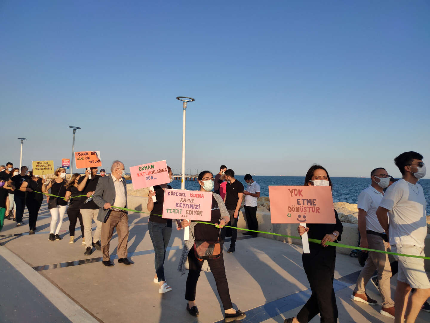 MERSİN- BEKİR ŞAHİN; Dünya Çevre Günü nedeniyle CHP Mersin il örgütü sahilde ip tutarak tek sıra halende sosyal mesafeli yürüyüş yaparak çevreye dikkat çektiler. CHP İl Başkanı Adil Aktay, “Çevreye verilen zararlar doğal yaşamı bitirme, insanın yeryüzündeki varlığını tehdit etme noktasına geldi” dedi.