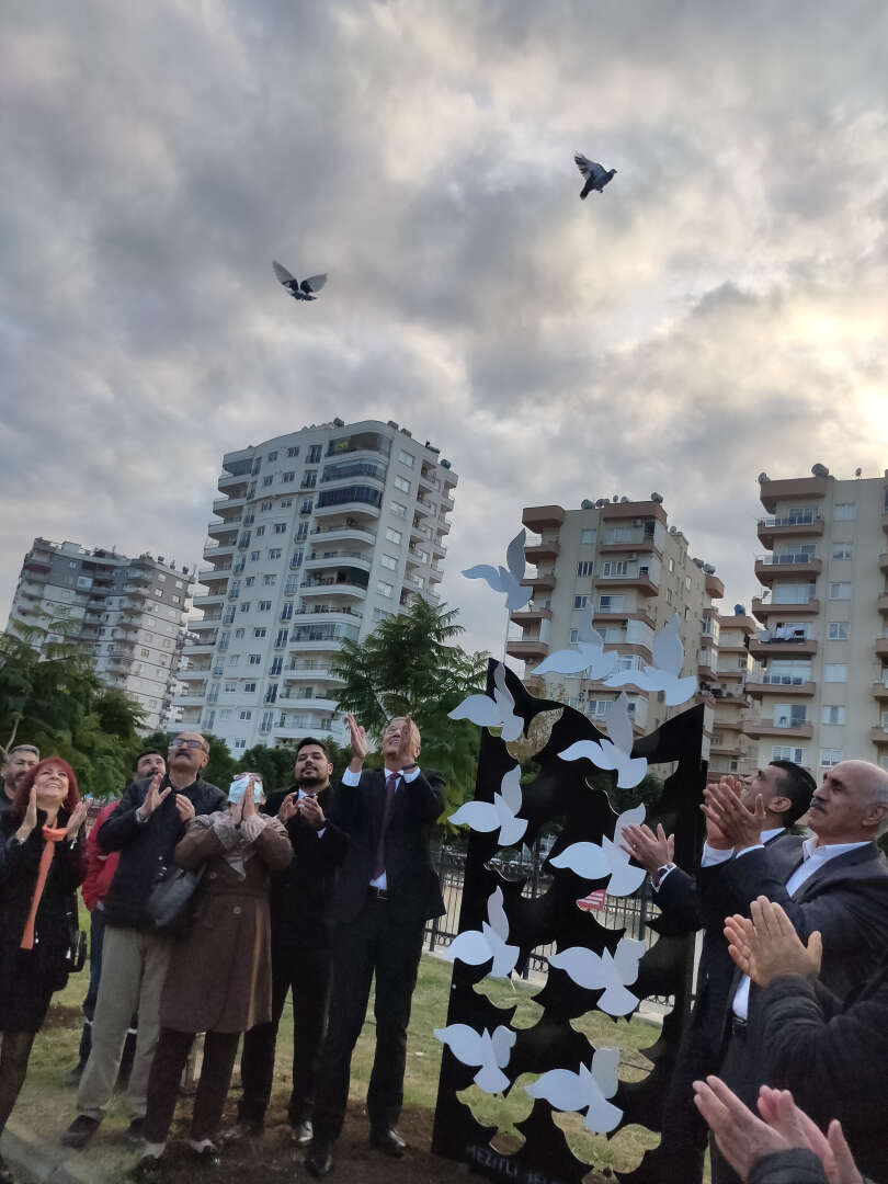 Mezitli Belediyesi İnsan Hakları Koruluğunda gerçekleşen etkinlikte, Baro Başkanı Av. Gazi Özdemir, Mezitli Belediye Başkanı Neşet Tarhan ve etkinliğe katılanlarla birlikte özgürlük, eşitlik, kardeşlik, barış, adalet ve vicdan özlemini temsilen güvercin uçurdu. www.yenicizgihaber.com YENİ ÇİZGİ