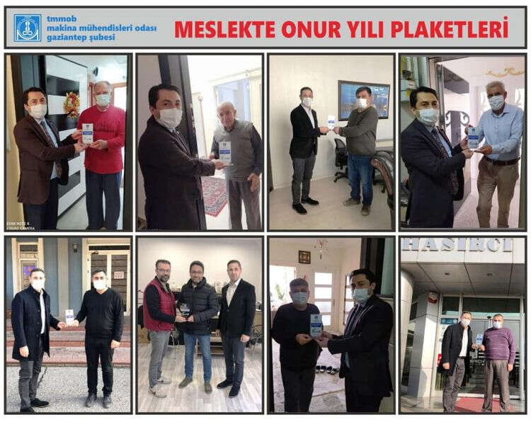GAZİANTEP- BEKİR ŞAHİN; Makine Mühendisleri Odası (MMO) Gaziantep Şubesi yönetimi her yıl olduğu gibi bu yılda meslekte 25. 40. 45, 50, 55, ve 60.ncı yılını dolduran üyelere onur plaketi veriyor. MMO, bu yıl Pandemi nedeniyle meslekte onur plaketlerini üyeleri ev ve işyerlerinde ziyaret ederek takdim ediyor. MMO Şube Başkanı Aykut Kocalar, “Özveri ile mesleğini icra eden ve bir ömrü mesleğine adayan, üyelerimizi ve meslek büyüklerimizi tebrik ediyor, meslekte nice yıllar diliyoruz” dedi.