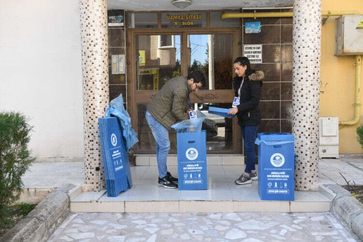 Fuat Morel Mahallesindeki çalışmaların verimli geçmesinin ardından 50. Yıl Mahallesini de pilot bölge olarak seçen ekipler, buradaki bilgilendirme çalışmalarının ardından ambalaj atığı kutuları bırakarak, toplama işlemlerine başladı.
